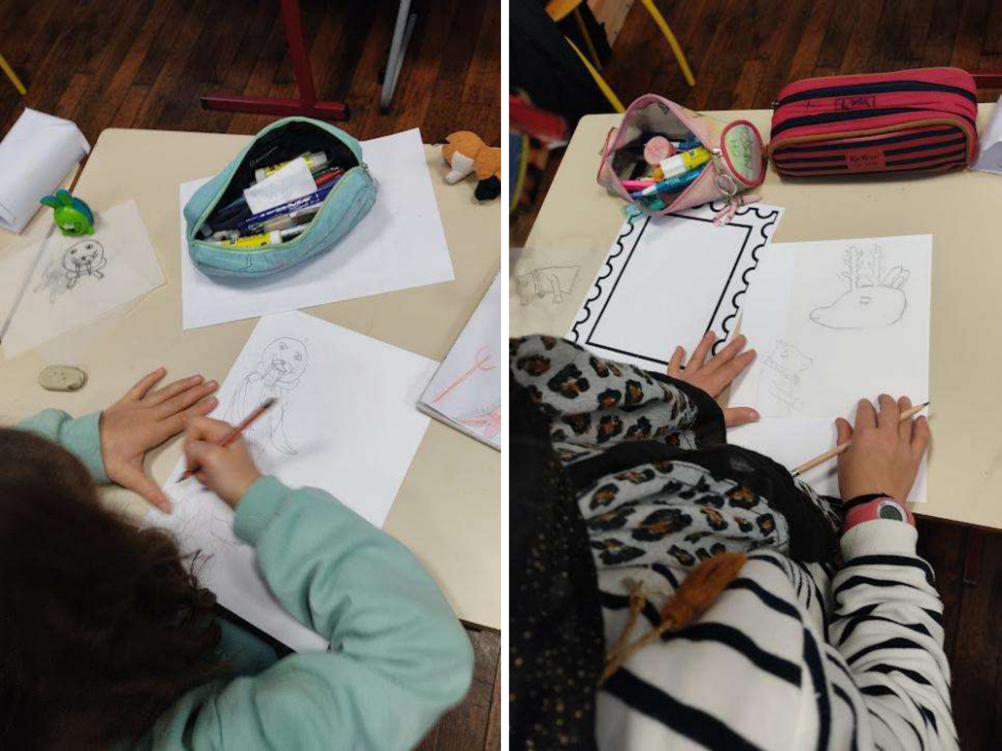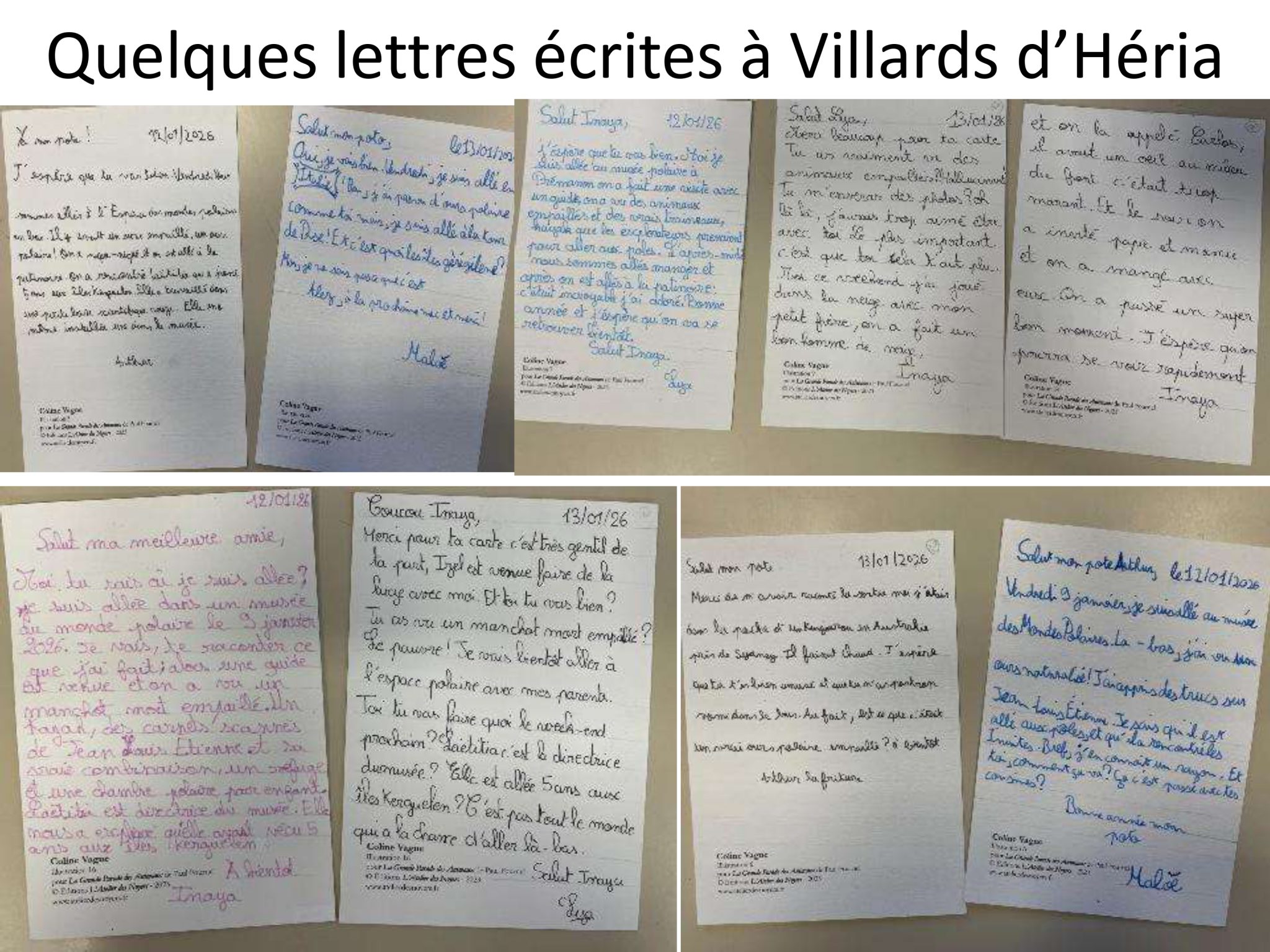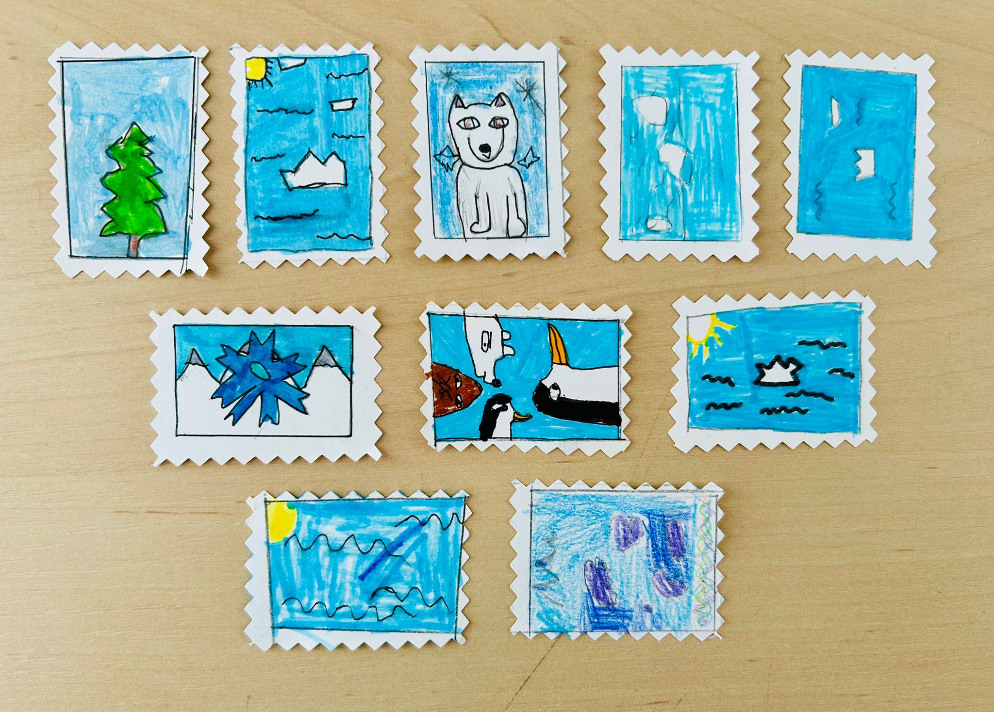– D’écrire des lettres manuscrites à des destinataires de leur choix (en créant leurs timbres et leurs enveloppes) – lettres qui partiront par bateau et brise-glace d’abord ⛴ aux Iles Kerguelen puis en terre Adélie avant de revenir à leur destination.