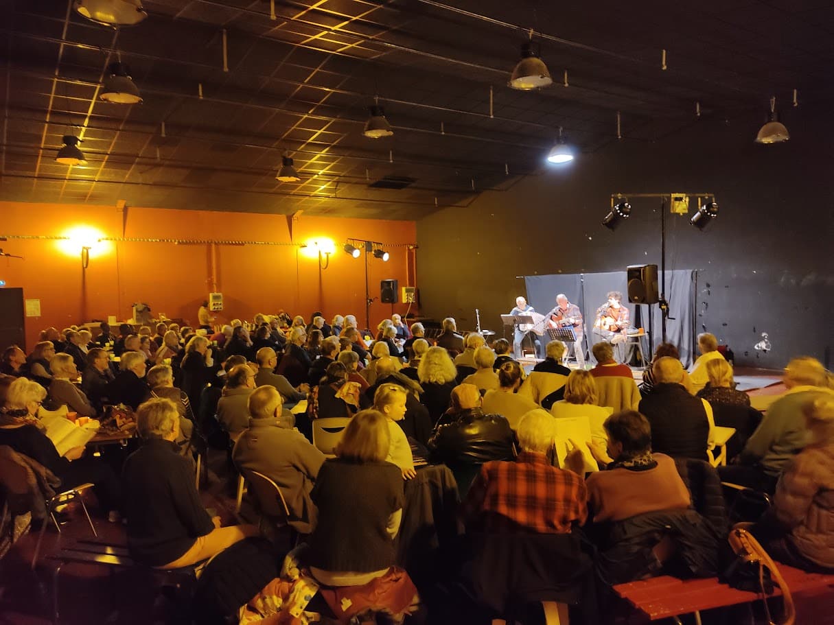 Cabaret Idéklic #1 09/02/2026 SOIREE BRASSENS Le nombre de participants témoigne de la réussite de cette soirée placée sous le signe du partage et de la convivialité. Au menu : – apéro offert : kir ou punch sans alcool ; – soupe de courge et butternut au lard fermier, croûtons ; – tarte au sucre ou chocolat. Le groupe Le public La soupe Les desserts Nous remercions le groupe « la mauvaise herbe » pour sa participation et son énergie. A suivre ! Previous Post Le progrès édition Jura – Article du 16-01-2026
